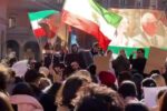 In piazza Galvani le bandiere dei tre Stati e la manifestazione: «Questo regime islamico non rappresentava l'Iran, ora ci sarà un periodo di transizione guidato dal principe Reza Pahlavi»...
